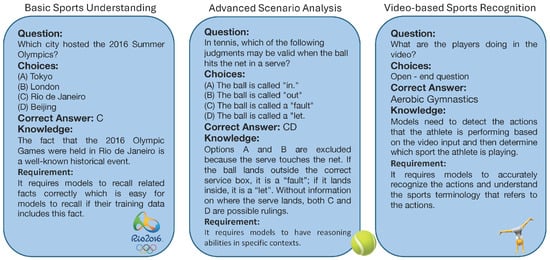 - Li, H.; Deng, A.; Ke, Q.; Liu, J.; Rahmani, H.; Guo, Y.; Schiele, B.; Chen, C. Sports-QA: A Large-Scale Video Question Answering Benchmark for Complex and Professional Sports. arXiv 2024, arXiv:2401.01505. [Google Scholar]