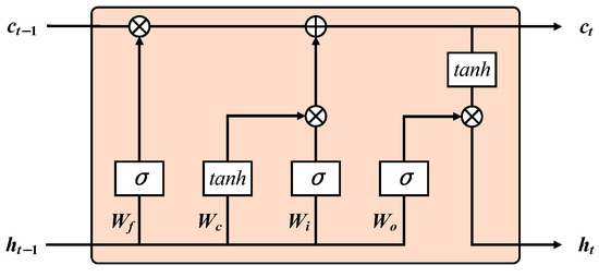The cell state is processed through the tanh function to normalize the values between −1 and 1, and then it is multiplied by . represents the cell state at time step t. The values of W, U, and b are all determined through the learning process during training. The gated structure of the LSTM enables it to effectively capture both the short-term and long-term temporal dependencies within the sequence.