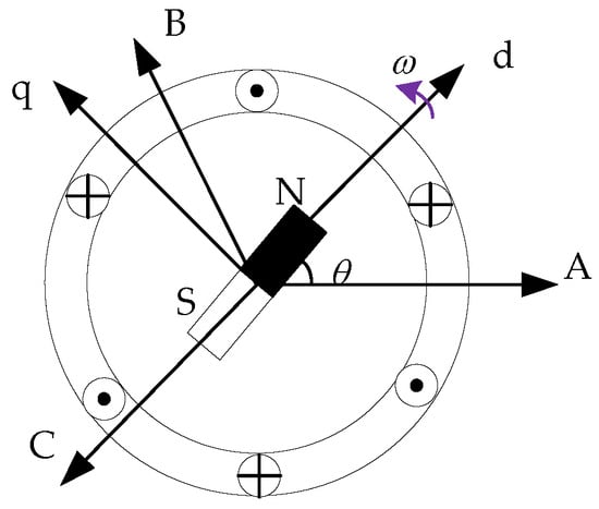 The structure diagram of the PMSM is shown in Figure 2. After coordinate transformation, the magnetic linkage and voltage equations of the PMSM are obtained: