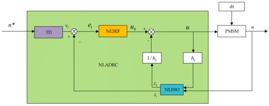 The initial design of the first-order ADRC of the system should be based on the aforementioned nonlinear function. In accordance with (3) and (4), the state-space expression of the rotational speed equation can be derived as follows: