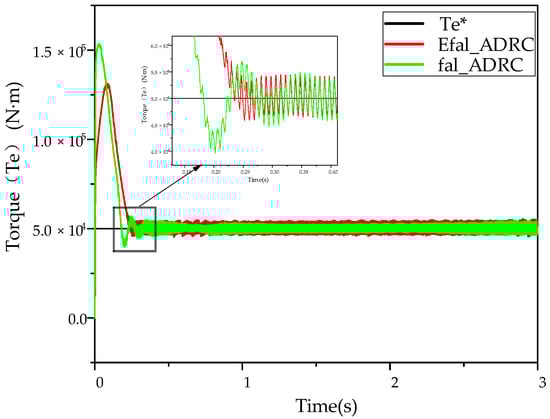 In order to reduce the difficulty of tuning parameters in the ADRC controller, the tuning of controller parameters is typically guided by certain rules. In the case of the second-order ESO, the undetermined parameters can be set as: , while for the third-order ESO, the undetermined parameters can be set as: , , . Based on these settings, the ESO bandwidth in the speed loop is determined to be 280, and the controller parameters are shown in Table 3. Concurrently, the parameters of the PI controller must be set as follows: Kp = 30 and Ki = 200 for the speed ring, and Kp = 20 and Ki = 150 for the d- and q-axis current loop.