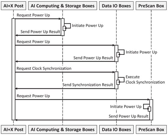 - System Initialization and Resource Allocation: During the initialization phase, the AI+X Post orchestrates the registration of edge nodes, such as AI Computing and Storage Boxes and Data IO Boxes, ensuring that resources are dynamically allocated based on the real-time demands of the system (R1, R2). DevSecOps pipelines are activated to deploy security policies and CI/CD workflows, enabling secure and scalable operations (R2).