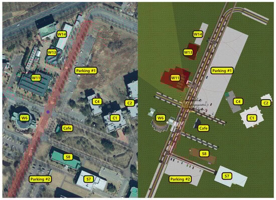 - Real-World Driving Environment (Hybrid-V2X Mobile Station, Fixed SmartX Pole, Mobile SmartX Pole): In addition to the virtual environment, the real-world driving environment includes actual V2X devices and sensors that simulate real-world conditions. These include the following: