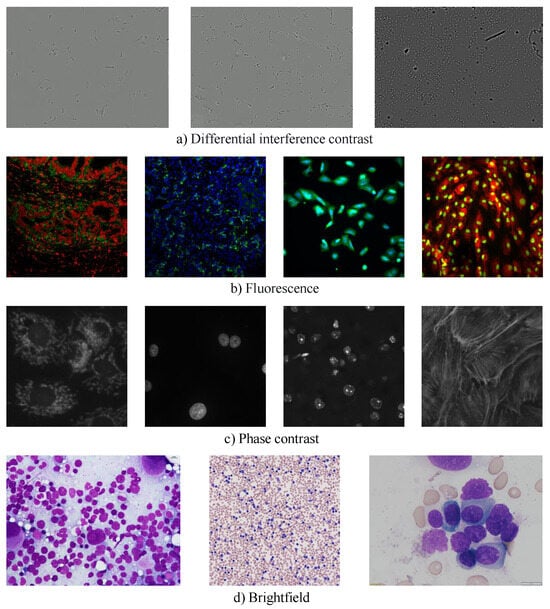 Four types of microscopy images.