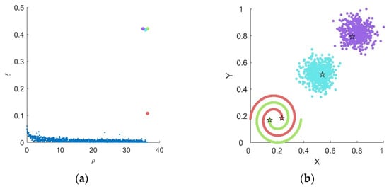 - Rodriguez, A.; Laio, A. Clustering by fast search and find of density peaks. Science 2014, 344, 1492–1496. [Google Scholar] [CrossRef]