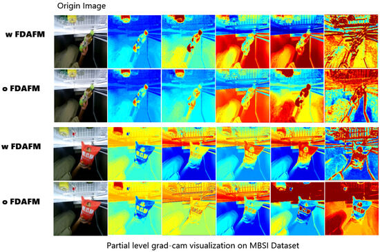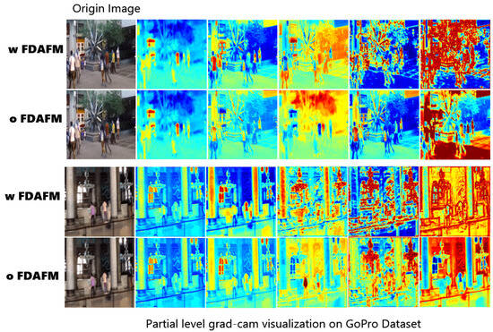 Similarly, the experimental results on the MBSI dataset (Figure 7) further corroborate the effectiveness and rationality of the FDAFM. Without the FDAFM, the network exhibits scattered attention and fails to accurately capture object details and edges. After integrating the FDAFM, the network clearly focuses on the edges and details of the image subjects, facilitating a better deblurring process.
