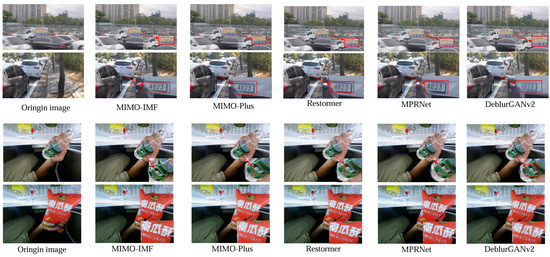 Figure 8 shows the visual comparison of the algorithm proposed in this paper with other methods in a real-world scene. Five models are compared and analyzed using two images selected from the GoPro and MBSI datasets, respectively.