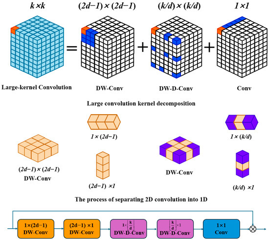 - Lau, K.W.; Po, L.M.; Rehman, Y.A.U. Large separable kernel attention: Rethinking the large kernel attention design in cnn. Expert Syst. Appl. 2024, 236, 121352. [Google Scholar] [CrossRef]