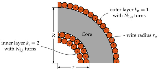 - Bartoli, M.; Noferi, N.; Reatti, A.; Kazimierczuk, M. Modeling Litz-wire Winding Losses in High-Frequency Power Inductors. In Proceedings of the PESC Record, 27th Annual IEEE Power Electronics Specialists Conference, Baveno, Italy, 23–27 June 1996; Volume 2, pp. 1690–1696. [Google Scholar] [CrossRef]