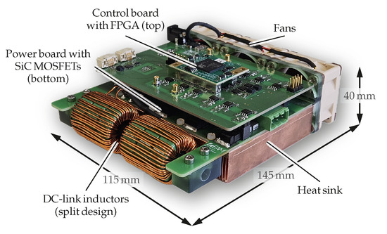 As a modulation strategy, a symmetric pulse-width modulation (PWM) scheme with reduced common-mode voltage as described in [28,35,36] is used. For all computations and analyses, unity power factor is assumed. Please note that, although the converter prototype that is presented later contains a buck-stage at the input, only the inverter stage is considered in the presented design process.