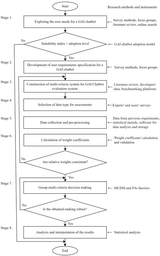 Selecting an appropriate generative AI (GAI) chatbot involves a structured, multi-stage decision-making process to ensure alignment with organizational needs and user expectations. The new framework for unified decision analysis of GAI chatbot data consists of eight stages (