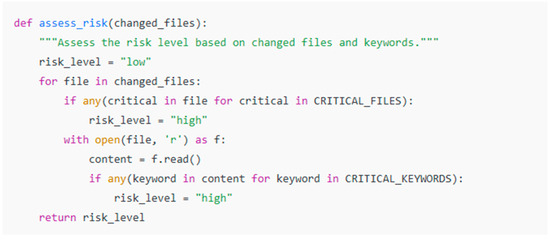 The proposed LLM-based framework integrates seamlessly into CI/CD pipelines, providing efficient and accurate vulnerability detection through a staged approach. In the first stage, a lightweight validation script (classifier.py) evaluates code changes based on heuristic rules, identifying high-risk modifications such as those involving critical files or vulnerable keywords (See Figure 4).