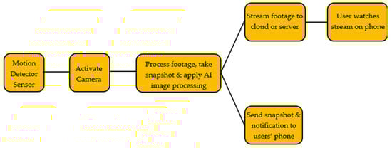 At the start of the twenty-first century, the world entered the Internet era, fundamentally transforming how people live and work. With the rapid advancement of information technology and the Internet, a new application emerged, known as the Internet of Things (IoT) [1]. A smart home is an application within the IoT environment, consisting of physical devices connected to the Internet. These devices communicate with one another to deliver innovative, intelligent services to users. Over time, advancements in technology have significantly shifted people’s expectations regarding Home Automation and how they interact with their homes [2]. The increasing affordability and widespread use of electronic devices and the Internet have played a key role in this transformation. Today’s modern Home Automation Systems are a sophisticated blend of Ubiquitous Computing Devices and Wireless Sensor/Actuator Networks. However, the growing demand for ‘Convenient Access’ has introduced new security challenges within the Home Automation landscape. There is a pressing need for a viable and accessible approach that enables the collection of data and identification of risky behaviors within smart-home environments [3], while ensuring user privacy is preserved. Despite the growing interest in integrating artificial intelligence (AI) and Internet of Things (IoT) technologies in smart home security, there remains a significant research gap in thoroughly exploring and evaluating the range of AI and IoT options, particularly in the context of video processing. Limited studies have focused on comparing various AI algorithms and IoT configurations to determine their effectiveness and adaptability for real-time security applications in smart homes. This gap underscores the need for a comprehensive analysis of different AI-driven video-processing techniques and IoT frameworks, which could reveal valuable insights for enhancing security, optimizing resource use, and addressing privacy concerns in the smart home domain. To address these challenges, this study proposes to develop innovative strategies that leverage the capabilities of artificial intelligence (AI) and Internet of Things (IoT) technologies. This includes exploring a range of AI algorithms suited for real-time data processing, enhancing IoT connectivity for seamless device integration, and implementing robust privacy-preserving mechanisms. This study presents the development of a smart security system designed to monitor specific areas and notify a designated user when motion is detected, all while maintaining a high level of user privacy. The system is composed of three primary components: a motion sensor, a computational unit capable of performing advanced computations, and a camera. Upon detecting motion, the system activates the camera, which is then utilized by the computational unit to apply artificial intelligence (AI) techniques. The user is subsequently notified of the detected motion and is provided with the option to view the AI-processed camera feed. Figure 1 illustrates the proposed smart security system function routine. A primary functionality of this project is its capacity to alert the user upon motion detection. Following this, the system enables the user to access either the live or recorded camera feed, with the AI model assisting in identifying the subject. Alternatively, the alert can be dismissed if the AI recognizes the individual as non-threatening. This study addresses the issue of home security and its common limitations. Although many households rely on security cameras to safeguard their property, it is impractical to continuously monitor camera footage. This study seeks to overcome this challenge by developing a more intelligent and autonomous security system that does not require constant human oversight and only issues notifications when necessary. Throughout the project, user privacy remained a paramount concern, and critical decisions were made to safeguard privacy, significantly shaping the project’s direction from its initial planning stages onward.