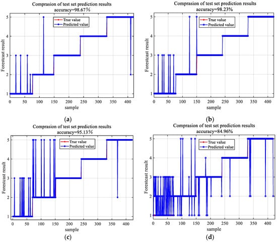Figure 11, the performance metrics of the self-attention–LSTM classification approach introduced in this study surpass those of other methodologies, suggesting that in comparison to the other three diagnostic techniques, the self-attention–LSTM diagnostic methods exhibit a notable degree of superiority.
