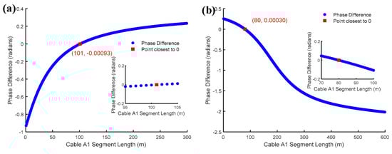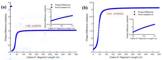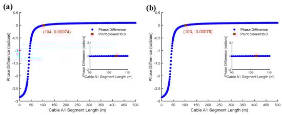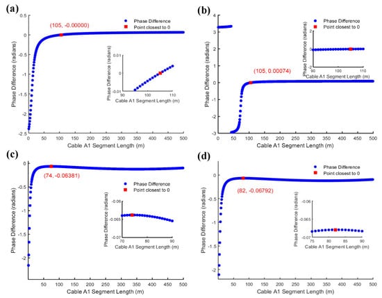 Through the bisection method or minimization of the absolute-values method, the zero-crossing points of curves are and . The cable length corresponding to the zero-crossing point is the desired defect location.