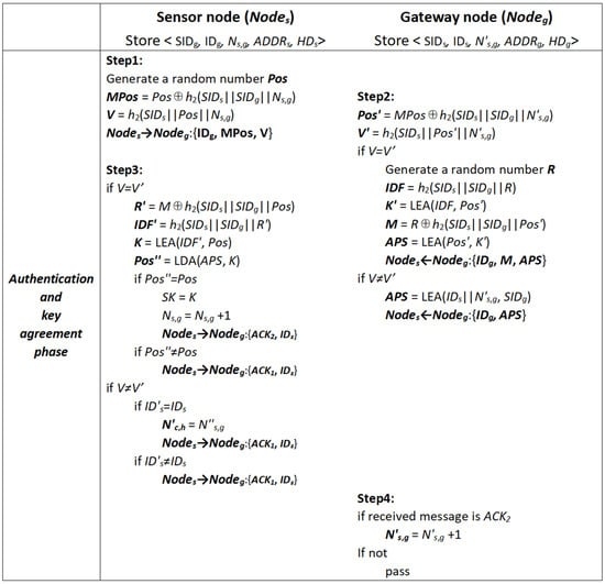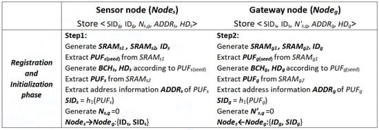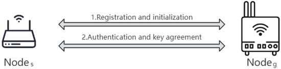 Figure 1 shows the architecture of an SG system in terms of authentication schemes. The protocol authentication system consists of two parties: a sensor node (Nodes) and a gateway node (Nodeg). The two nodes need to generate the device number through the registration and initialization phase, complete the registration and initialization of the device, and then complete the mutual authentication through the authentication and key agreement phase. Since data transfer between Nodes and Nodeg takes place through open and vulnerable communication channels, this presents challenges in data protection, authentication, and mutual authentication. Therefore, in order to ensure the data security and the authenticity of the identity of the participants in the smart grid environment, a scheme is urgently needed to realize the mutual authentication between Nodes and Nodeg and the establishment of session keys.