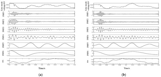 Decomposition results of double-ended voltage line modal components via VMD: (a) inverter side; (b) rectifier side.