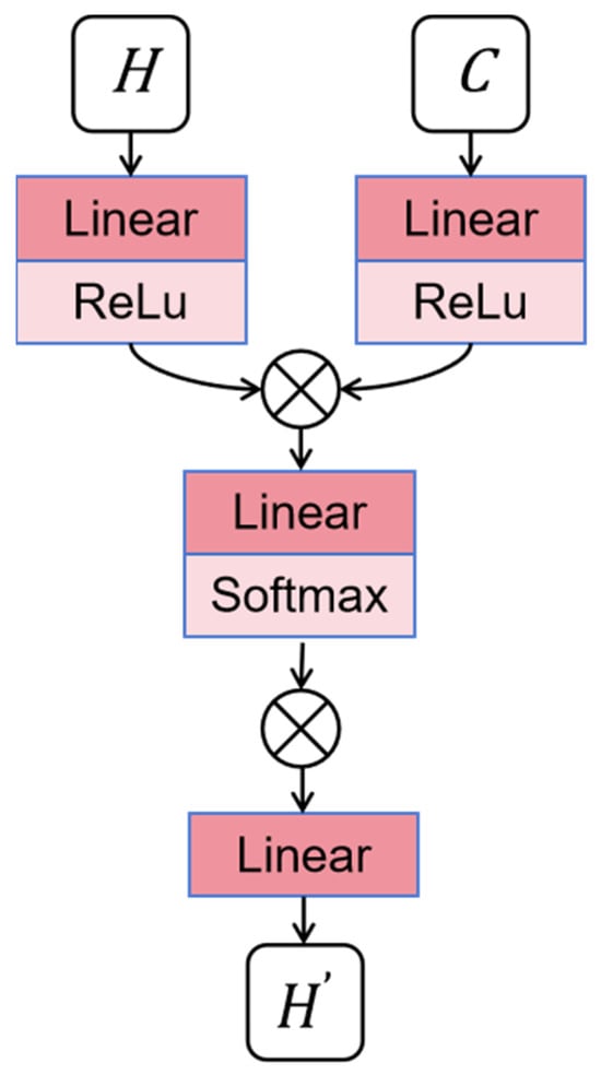 20], the attention distribution of the historical item matrix is calculated to obtain the reconstituted historical item matrix to extract valuable historical information. The bilinear model and the attention mechanism are used to calculate the correlation of the historical data with the current context, and the most valuable information is extracted by weighting the historical data. The bilinear model attention mechanism is a model that can capture interactions between features, which obtains an interaction score by computing the bilinear function between two feature vectors. In the attention mechanism, the bilinear model is used to calculate the attention score of each row of the historical item matrix (representing a historical state) on the contextual entity matrix. These scores reflect the strength of the association of the historical state with the current context.