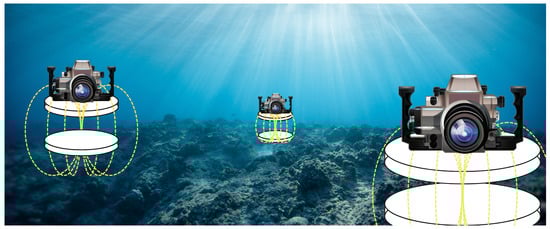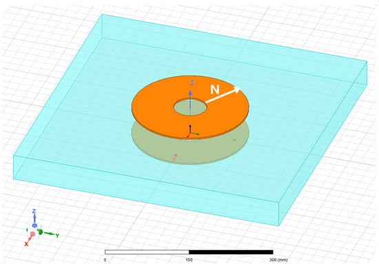 Additionally, this parasitic capacitance is also affected by the coil geometry, as well as the coil’s size. For this reason, the analysis of the parasitic capacitance should start with the definition of the coupled coils. Due to its good performance, simplicity, and common use in inductive wireless chargers, the circular geometry is the initial proposal of this analysis [23]. Thus, it can be interesting to find the relation between the coil diameter and the parasitic capacitance value caused by the high conductivity of seawater. To do so, a set of four different coil sizes will be proposed. The definition of the coil size will be determined by the restriction imposed by the underwater device. In the specific application considered in this work, the design cannot exceed 20 cm in order to keep it within the confines of the camera inclosure. In this way, the proposed coil topology is shown in Figure 4.
