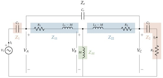 The impedances related to the primary and secondary coils, considering the mutual inductance between coils, are calculated by means of the Equations (3)–(5).