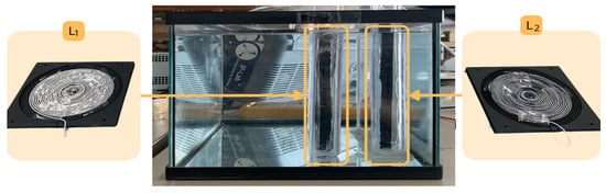 To replicate the effects of seawater, the system has been placed in a water tank, in which salt has been dissolved at a concentration of 3% of the total volume of water [28], as can be seen in Figure 12. This is the average percentage of salinity found in seawater.
