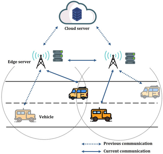 There are three entities in the proposed model: the cloud server (CS), edge server (ES), and vehicle. Figure 1 shows the system model.