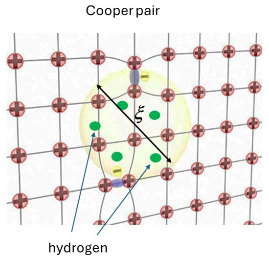 Let us assume that the volume of superconductor is implanted with an atomic or molecular species (say hydrogen), which has a negative scattering length β, as illustrated in Figure 3. If the Cooper pair size ξ satisfies Equation (2):