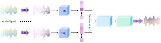 The original 8 consecutive frames of noisy speech are subjected to STFT to extract spectral features. After obtaining the spectral features for each frame, they are organized into a three-dimensional spectral feature map with dimensions (F, T, 1). Since the GRU layer processes sequential data, the time series features are adapted to meet the input requirements of the GRU. The number of hidden units in the GRU is set to 64 to effectively capture long-term temporal dependencies between frames.