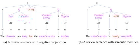 - Chen, C.; Teng, Z.; Wang, Z.; Zhang, Y. Discrete Opinion Tree Induction for Aspect-Based Sentiment Analysis. In Proceedings of the 60th Annual Meeting of the Association for Computational Linguistics (Volume 1: Long Papers), Dublin, Ireland, 22–27 May 2022; pp. 2051–2064. [Google Scholar] [CrossRef]