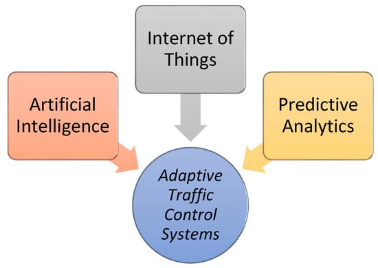 The relationship between AI, IoT, and predictive analytics and adaptive traffic control systems.
