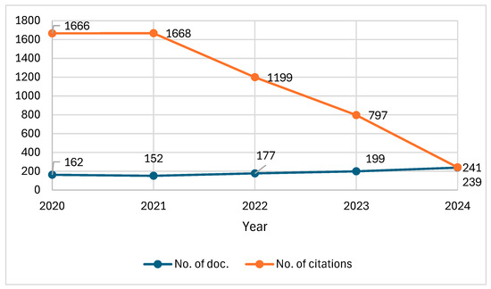 Since 2020, ATCS has seen rapid adoption in the road traffic and transport sector, experiencing exponential growth through 2024. Research output significantly increased after 2020, driven by continuous improvements in ATCS’s adaptability to different technical approaches. The upward trend remains evident when considering the number of publications in the final quarter of 2024 (as of the search date). Figure 5 shows the cumulative number of citations per year, with a decline observed as expected, due to the time-dependent nature of citation accumulation.