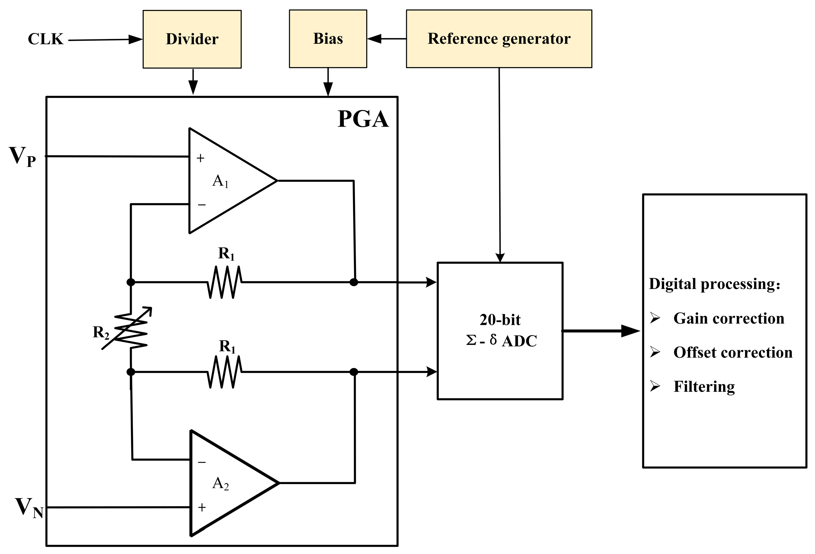 Li W, Tian D, Zhu H, Sun Q. A Programmable Gain Amplifier Featuring a High Power Supply Rejection Ratio for a 20-Bit Sigma-Delta ADC. Electronics. 2025; 14(4):720. https://doi.org/10.3390/electronics14040720