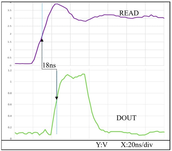 In our design, the CG read pre-charge can be bypassed and in the pre-charge stage, only WLs need to be pre-charged. Through this method, the time of pre-charge can be remarkably shortened, as depicted in Figure 7b. The implementation of high-speed reading can be explained through two mechanisms. First, it is obvious that the CG pre-charge process is much slower than the WL in the reference IP, which will effect the overall pre-charge time (the pre-charging time is defined as the delay from the READ signal raising margin to Vwl/Vcg up to 90%). In addition, in the comparison stage, the enhanced cell structure has a larger cell current, which can shorten the comparison time between the cell current and the reference current, so the read time can sped up too.