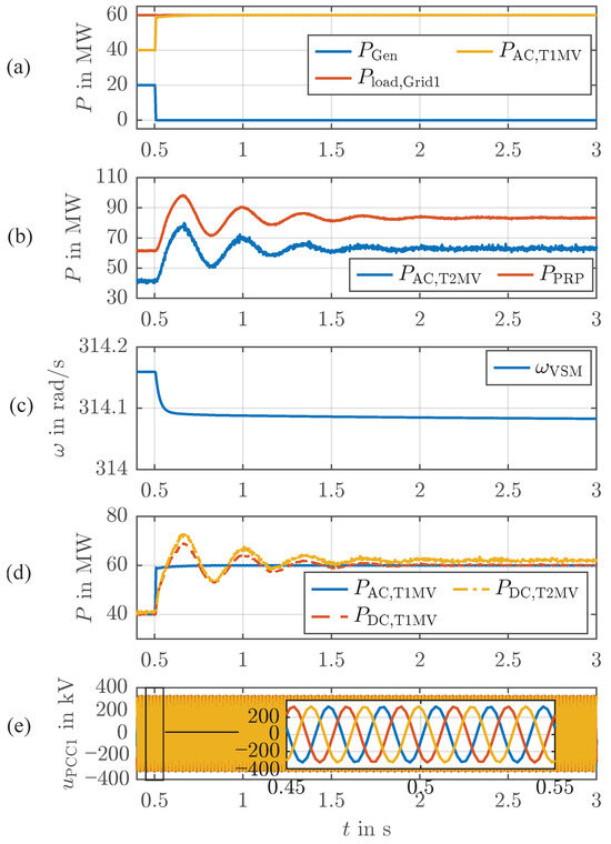 As described in Section 4.3, an MVDC converter terminal that includes the GFM scheme based on VSM is integrated via a coupling transformer at the node named PCC1 and has a power rating of MW, and MVAr.