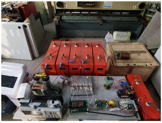 In order to verify the correctness of the switching sequence of the capacitor bank and the feasibility of the control scheme, a prototype low-power-scale experimental platform was built, the schematic diagram of the platform is depicted in Figure 23 and the picture of it is shown in Figure 24. Experiments were carried out at a low-power scale with = 400 A and the pulse-width shortened to 16 ms.