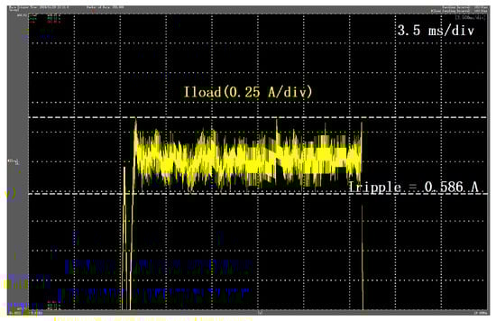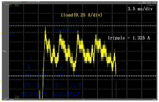 According to (22) and the parameters in Table 3, the theoretical maximum fluctuation of the load current is 3.86 A, while the details of the load current in Figure 22 show that the maximum fluctuation of the load current is 3.67A, which is very close to the theoretical value and makes the stability of the load current within 1000 ppm.