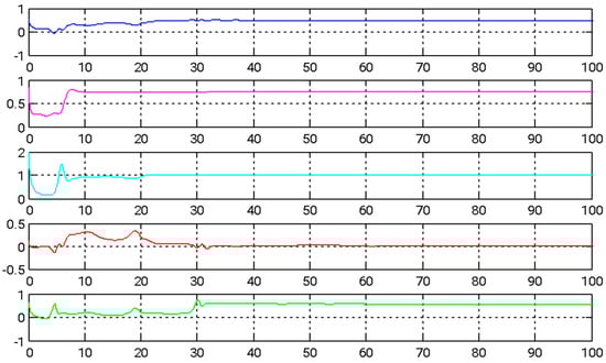 where , , , , and These represent errors in the parameters, which are all positive values. u1(t), u2(t), u3(t), and u4(t) denote the adaptive backstepping controllers, which are formulated as follows:
