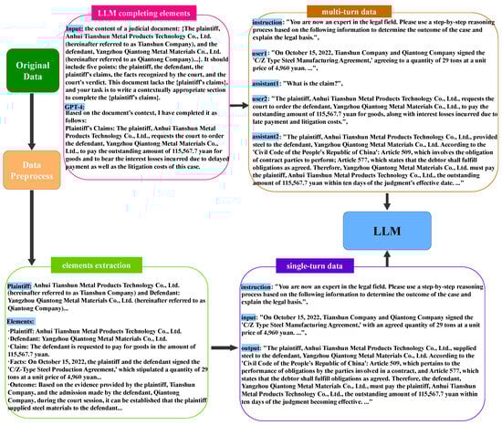In our study, the data for the self-constructed legal domain question-answering dataset were sourced from China Judgements Online (CJO) (https://wenshu.court.gov.cn/, accessed on 17 April 2024), focusing on publicly available judicial documents related to civil and compensation cases. During data preprocessing, we excluded documents with the following characteristics: (1) Short Content, where documents were too brief due to lawsuit withdrawals or settlements, as they lacked the necessary logical structure for constructing Chain-of-Thought (CoT) data; and (2) Ambiguous References, such as retrial judgments that repeatedly cite initial trial content, resulting in unclear references. An example of this is phrases like “legally overturning the judgment to support all the appellant Supply and Marketing Company’s claims from the first instance” which contain ambiguous references that would be unclear to the model. For short content, we developed a Python script to filter out data with content less than one page. For ambiguous references, we used regular matching to filter out data where titles contain keywords such as “second trial”, “third trial”, and “retrial”. This approach ensures a cleaner, more effective dataset for analysis.