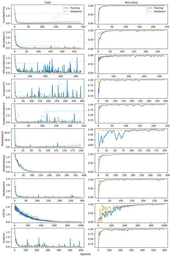 The learning curves in Figure 3 serve as a behavioral illustration monitoring the learning progress and performance of the DTL models over time. As the number of epochs or training iterations increases, these learning curves help to portray a well-fit model when both training and validation sets show consistent improvement that generalizes effectively.