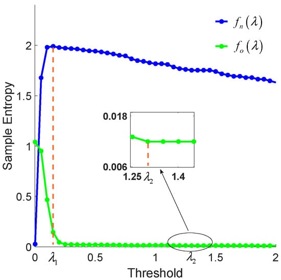 where  is the ratio of sample entropy value sequences and  is the threshold at the inflection point of . The ratio of the sample entropy value sequences is illustrated in Figure 2.