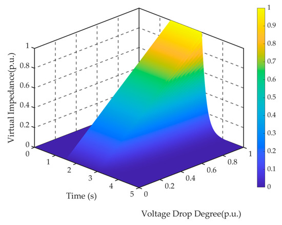 represents virtual resistance; denotes virtual reactance; is the time of fault occurrence; is the time of fault clearance; and is the virtual impedance decay coefficient.