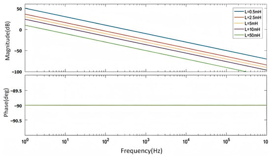 Bode plots of L-type filtering at different given inductance values.