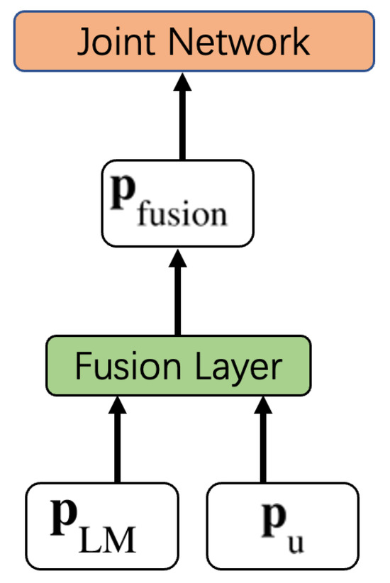 Although the aforementioned studies have achieved notable progress under conditions of data scarcity, they still fall short in fully exploring and leveraging linguistic prior knowledge. End-to-end systems tend to rely heavily on large-scale annotated datasets to learn sufficiently robust language models, particularly when confronted with complex and variable speech inputs (e.g., dialects, accents, or domain-specific vocabulary). In end-to-end speech recognition, integrating an external LM has always been an effective method for improving system performance. The most common approach is shallow fusion [24,25], where, during inference, the decoding distribution of the end-to-end model is weighted and summed with the probabilities from the external LM. However, this method only utilizes the LM during inference and has limited interaction between the acoustic network and the language model [26]. To address the drawback of insufficient utilization of language priors in low-resource conditions, this paper proposes an end-to-end speech recognition method based on deep fusion. This method tightly integrates the external language model with the decoding network (RNN-T) during the training phase and jointly optimizes them. It inherits the concept of neural network language model fusion initially applied in fields such as natural language processing, speech recognition, and machine translation. Unlike shallow fusion, which simply applies weighted sums during inference, this method deeply couples the LM’s hidden state with the decoder’s output through a gating mechanism and a joint network. This effectively supplements language-level prior knowledge under conditions with very limited labeled data, overcoming the limitation of traditional shallow fusion, which can only apply simple weighting during inference. Systematic experiments were conducted using the Common Voice public dataset. The results demonstrate that, in an extremely low-resource scenario of 10 h of data, the application of deep fusion reduced the character error rate (CER) significantly from 51.1% to 17.65%. In a scenario with 100 h of data, an approximate relative reduction of 2.8% in CER was observed. Furthermore, ablation studies on the number of model layers revealed that even when the number of encoder and decoder layers is reduced to lower model complexity, deep fusion continues to effectively exploit external linguistic priors, thereby holding promise for delivering significant performance improvements across various low-resource speech recognition tasks.
