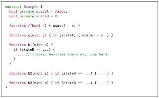 Such redundancy of test cases becomes a serious problem when the size of contract code increases. For example, assume that the contract contains many more functions than just f, g, and h_i. If too many test cases are focusing on executing specific functions, it may lead to insufficient exploration of other functions, as the time budget for the fuzzing campaign is limited. In the worst case, such bias of the initial test cases may prevent the fuzzer from detecting a vulnerability in the contract.