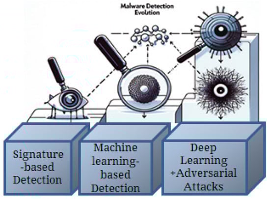 Traditional signature-based detection methods have proven inadequate in addressing these evolving threats. These methods rely on manual feature extraction from known malware samples, which is not only time-consuming but also lacks flexibility. Considering the increasing security threats in malware spreads, the challenges for machine learning (ML)-based malware detection and deep learning networks (DLNs)-based malware detection against new malware and their variations are summarized as follows (Figure 1):