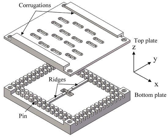 - Kildal, P.-S.; Zaman, A.U.; Rajo-Iglesias, E.; Alfonso, E.; Valero-Nogueira, A. Design and Experimental Verification of Ridge Gap Waveguide in Bed of Nails for Parallel-Plate Mode Suppression. IET Microw. Antennas Propag. 2011, 5, 262–270. [Google Scholar] [CrossRef]