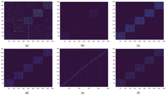 - The high-dimensional data in the view are mapped to a low-dimensional potential space by projection learning to reduce the complexity of the method and to avoid dimensional catastrophes. Meanwhile, the -norm is utilized for feature selection to remove the problem of outliers and redundant data on the clustering. The use of post-fusion in the low-dimensional space can adaptively and more accurately learn affinity graphs while maintaining the popular structure.