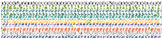 The visual recognition results of TUDMPC for the 500 handwritten digital images from the HW dataset are presented in Figure 10, where the images in the same cluster are identified by the same color. From Figure 10, TUDMPC misclassified 28 out of the presented 500 handwritten digital images and classified the remaining 472 handwritten digital images correctly. Thus, TUDMPC has excellent performance in digital image recognition.