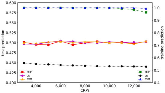 - For machine learning attacks, we performed tests using three machine learning algorithms, namely, Support Vector Machine (SVM), Logistic Regression (LR), and Multilayer Perceptron (MLP). Based on the results of the training, the verification of the security of the design against the machine learning algorithm attacks used in this paper was achieved.