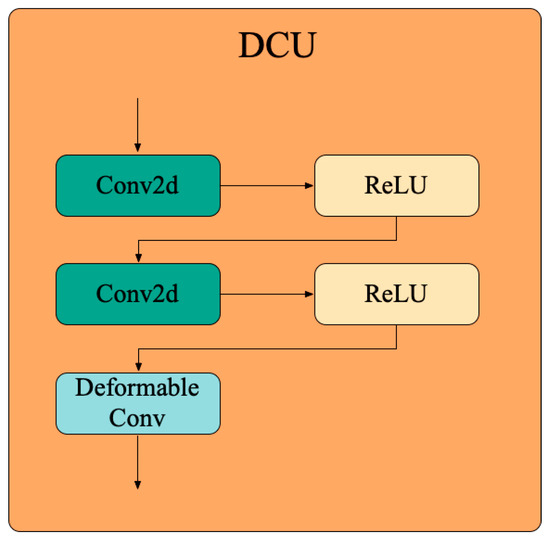 To address these issues, in the task of water body extraction from remote sensing images, we propose the Deformable Convolution Unit, as shown in Figure 2. In this module, we use two layers of regular convolution operations to retain more semantic information. In the lower layers, where semantic information is richer, we apply Deformable convolution, whose sampling positions better match the shape and size of water boundaries. It is capable of learning the detailed features of objects, better excluding the interference of complex background environments, and obtaining a more complete water image.